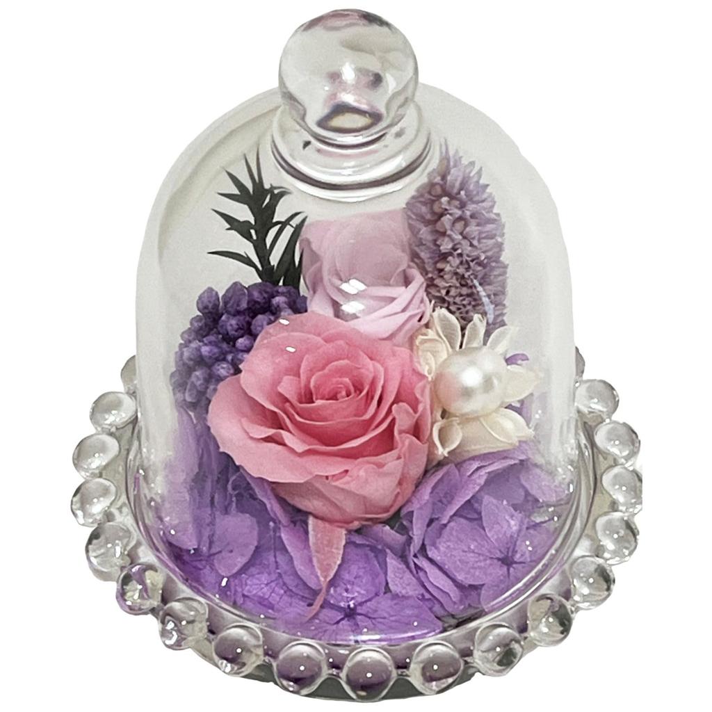 Q-FLA Preserved Flower Arrangement In a Dry Dome, Purple, Mother's Day Gift, 785634