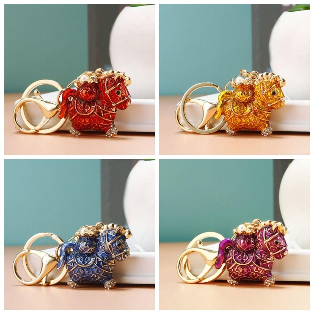 Zircon Zodiac Horse Pendant Exquisite New Year Pendant Sweet Horse Year Keychain Car Key Ring