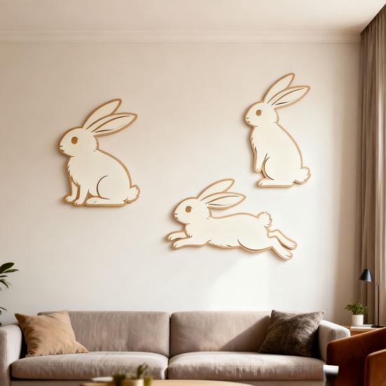 Arrange the large and small rabbits to create a clear visual hierarchy or customize their colors for a personalized artistic touch. Perfect for living rooms, bedrooms, or children's rooms, this versatile decoration suits both holiday celebrations and everyday wall décor needs.