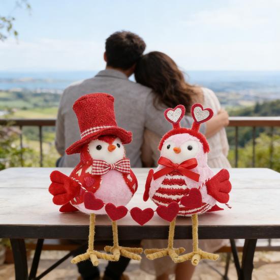Designed as a romantic couple set, one bird sports a gentleman's hat and bow tie while the other wears a love hair accessory and bow, ideal for adding a sweet ambiance to your home or special occasions like Valentine's Day and anniversaries. Its round body and innocent eyes offer a healing, cute appeal that relieves stress or makes a thoughtful gift. Versatile as daily decor, party table accents, souvenirs, or photo props, this figurine brings warmth and joy to any setting.