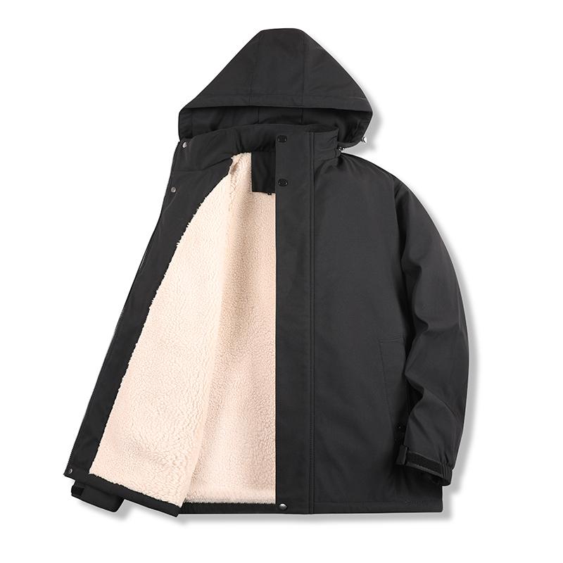 Winter Thick Windbreaker with Added Fleece, Men's Hooded Windproof Jacket, Lamb Fleece Warm Jacket, Men's Windproof Jacket