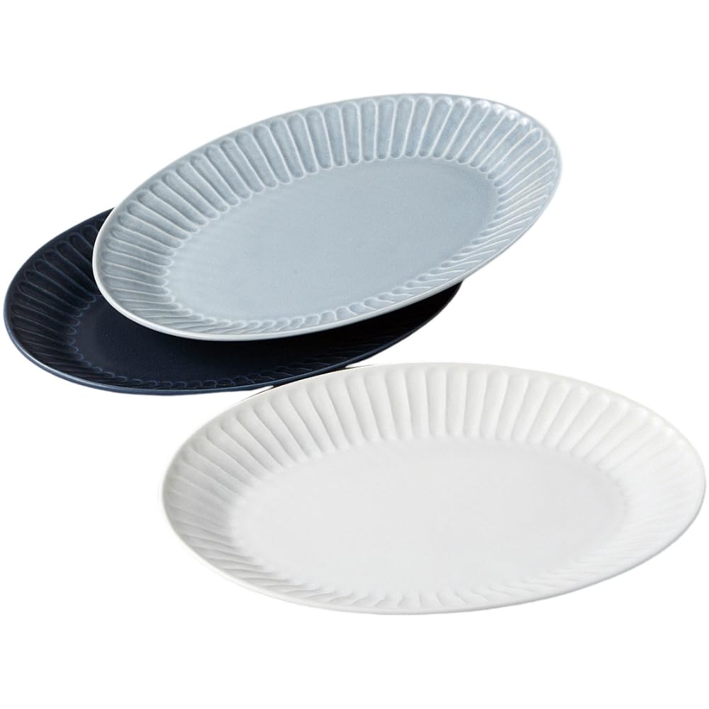 Ale-net Shinogi Cafe Plate Set (Set of 3), Oval, W26.5 X D19 X H3cm, Porcelain, Mino Ware, Made In Japan