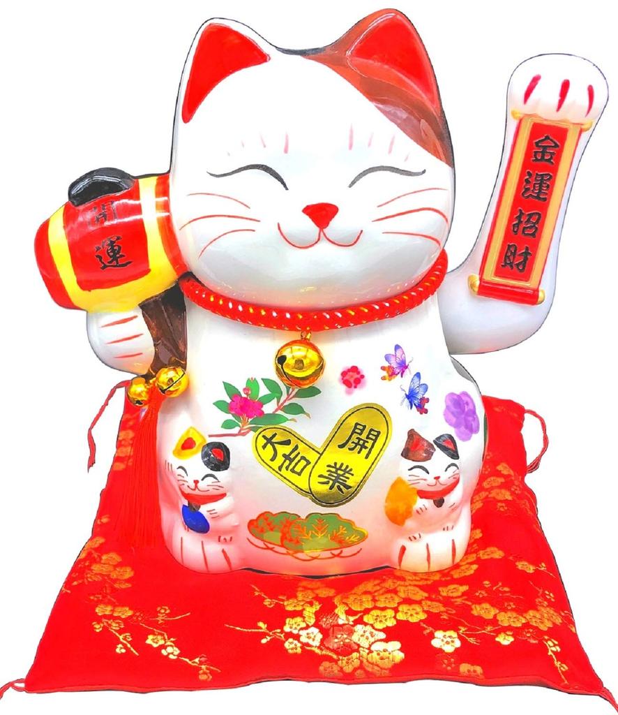 YRO Electric Maneki-neko Cushion with Moving Hands, Battery Operated, Good Luck, Prosperity, Opening Gift, Fortune and Wealth (Money Luck)