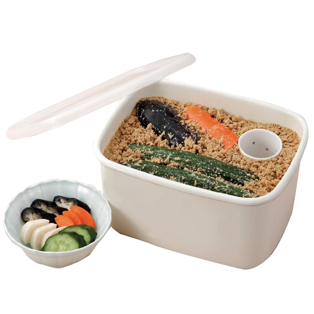 Enameled Pickle Container, Refrigerator-Safe, 3.2L [Water Removal Container, Odor-Resistant, Acid-Resistant, and Salt-Resistant Storage Container]