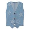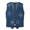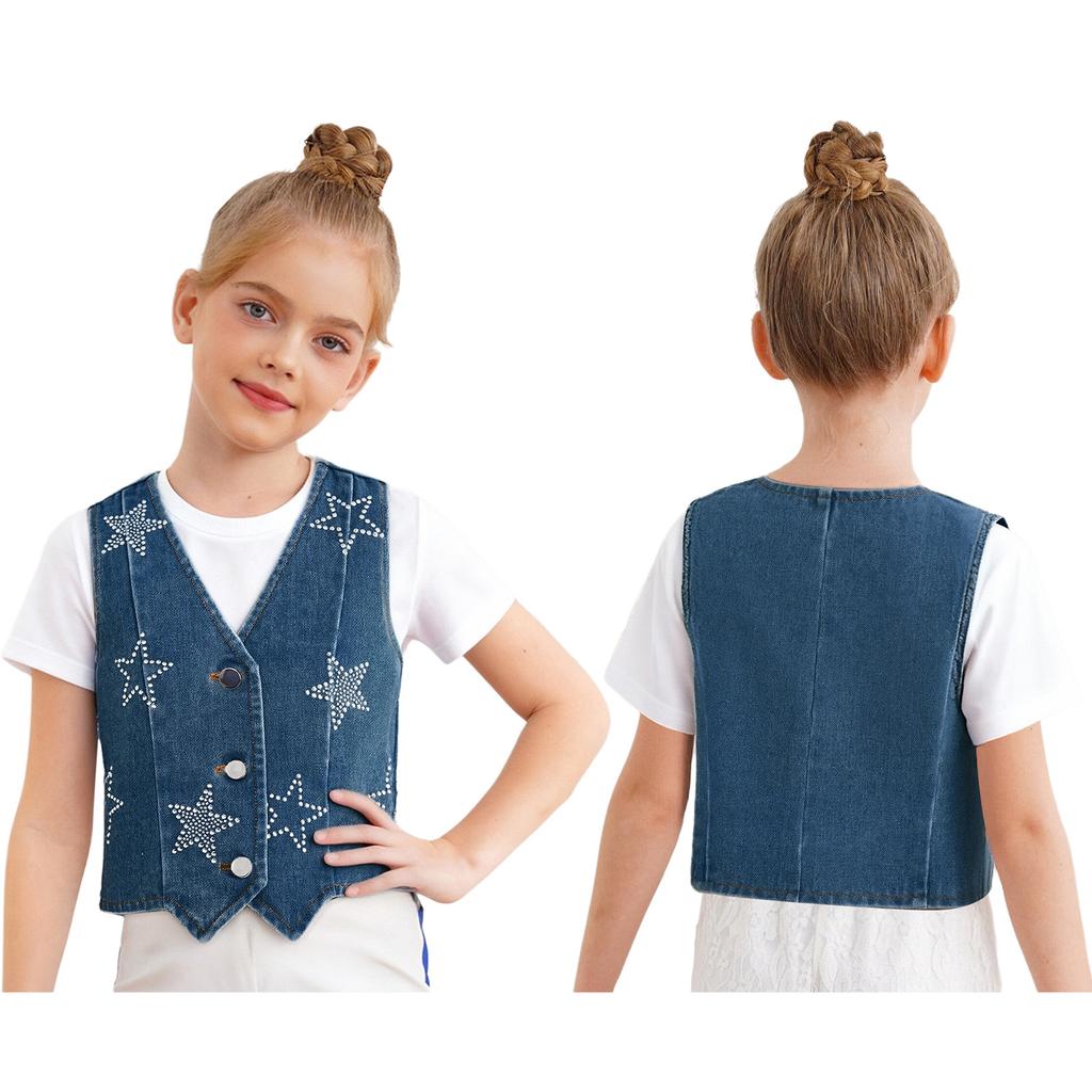 Girls Shiny Rhinestone Stars Denim Vest Buttons Sleeveless Jacket Asymmetrical Waistcoat Birthday Party Top