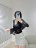 Stylish V-Neck Slim Lace Top: Women's Sexy Flared Long-Sleeve Shirt for Early Autumn