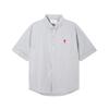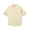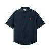 AMI Men's Classic Spring and Autumn Red Heart Embroidered Casual Cotton Solid Color Short Sleeve Shirt On the Chest