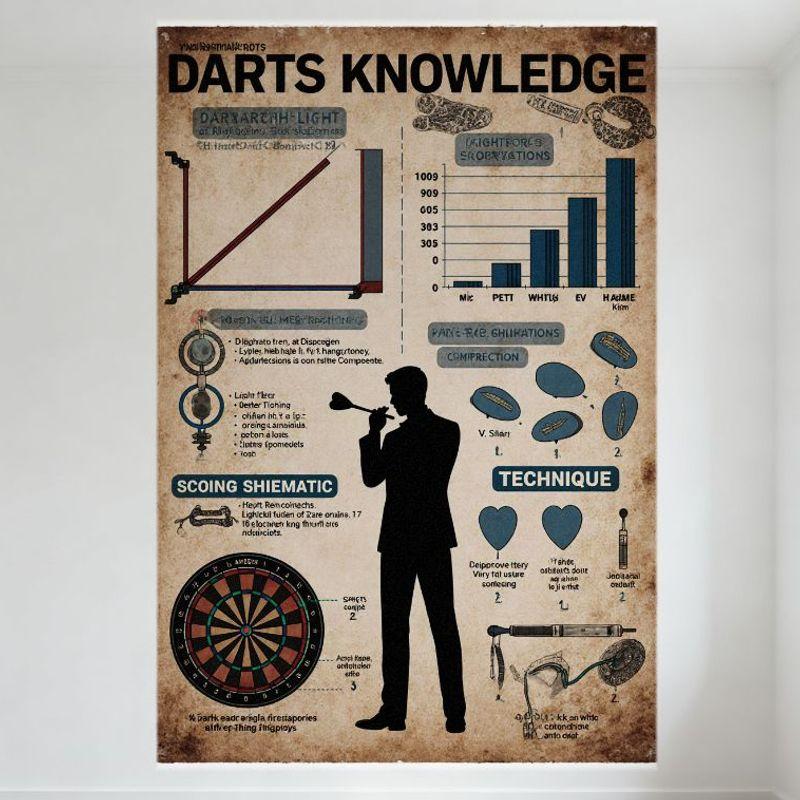 Vintage Dart Knowledge Tin Sign Darts Ability Light Graph Scoring Schematic Technique Metal Plaque for Man Cave Bar Pub Home Dec