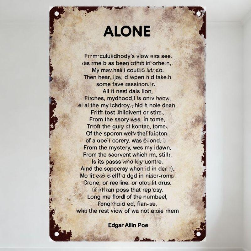 Vintage Edgar Allan Poe 'Alone' Poem Rusty Metal Tin Sign Distressed Aged Wall Plaque for Home Office Man Cave Bar Decor