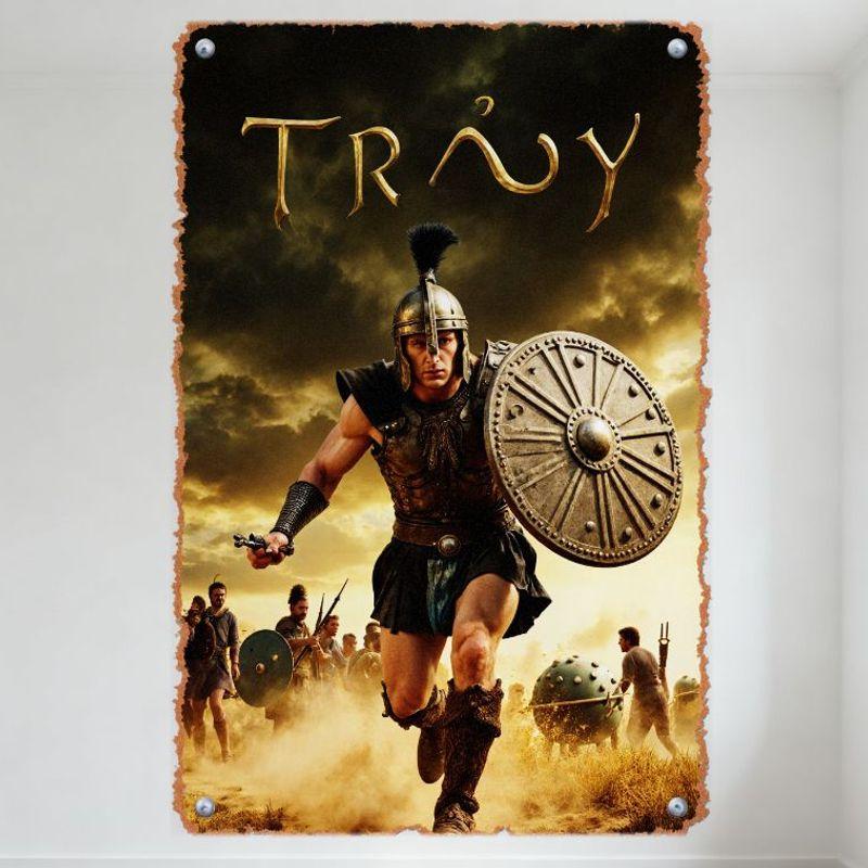Troy Movie Ancient Greek Warrior Metal Tin Sign Vintage Aged Distressed Wall Plaque for Man Cave Bar Home Decor