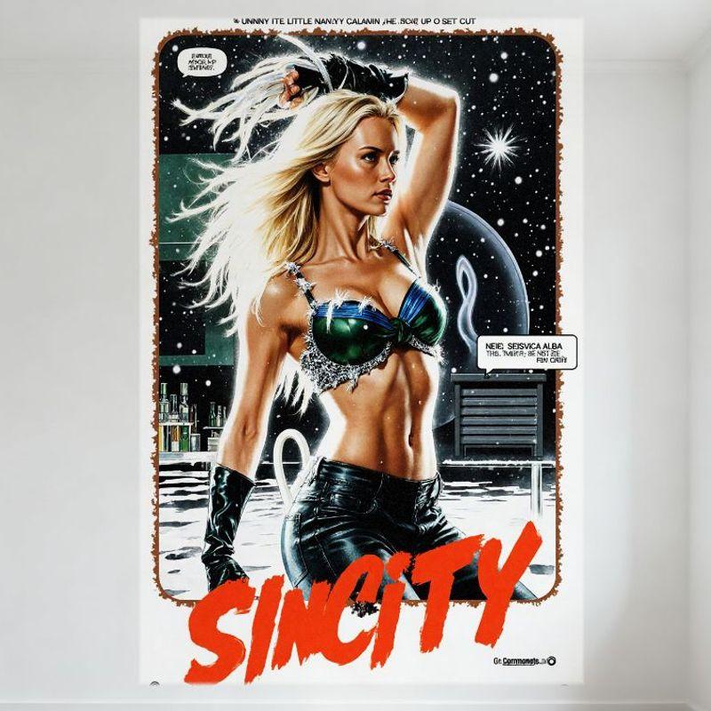 Sincity Vintage Comic-Book Style Metal Tin Sign - Blonde Heroine, Sci-Fi Lab Space Background Decor for Bar Club Man Cave Home W