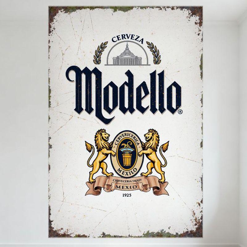 Vintage Modelo Cerveza Metal Tin Sign Distressed Aged Style for Bar Home Man Cave Decor 1925 Founding Year Emblem & Lions Design