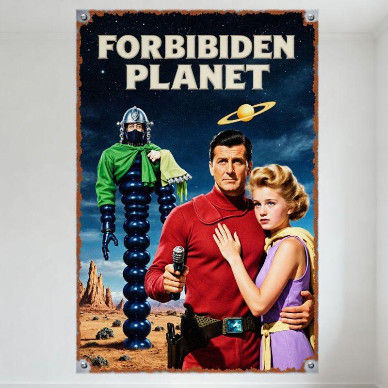 Forbidden Planet Vintage Sci - Fi Metal Tin Sign Retro 1950s Movie Poster Wall Decor for Man Cave Bar Home Office
