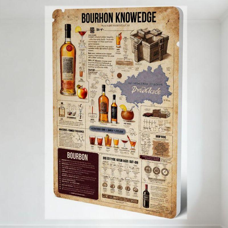Vintage Bourbon Knowledge Metal Tin Sign - Bourbon Whiskey Infographic Wall Art for Bar Club Man Cave Home Decor with Production