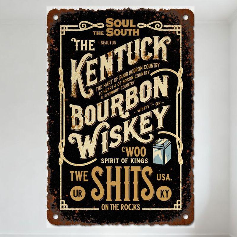Vintage Metal Sign 'Soul of the South' Kentucky Bourbon Whiskey Wall Plaque, Rustic Distressed Bourbon Country Bar Man Cave Home