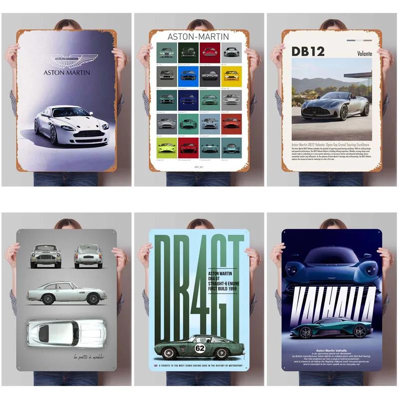 Aston Martins Tinplate Sign Classic Cars Poster Metal Wall Art Mural Retro Metal Sign Plaque for Garage Wall Art Decoration Room