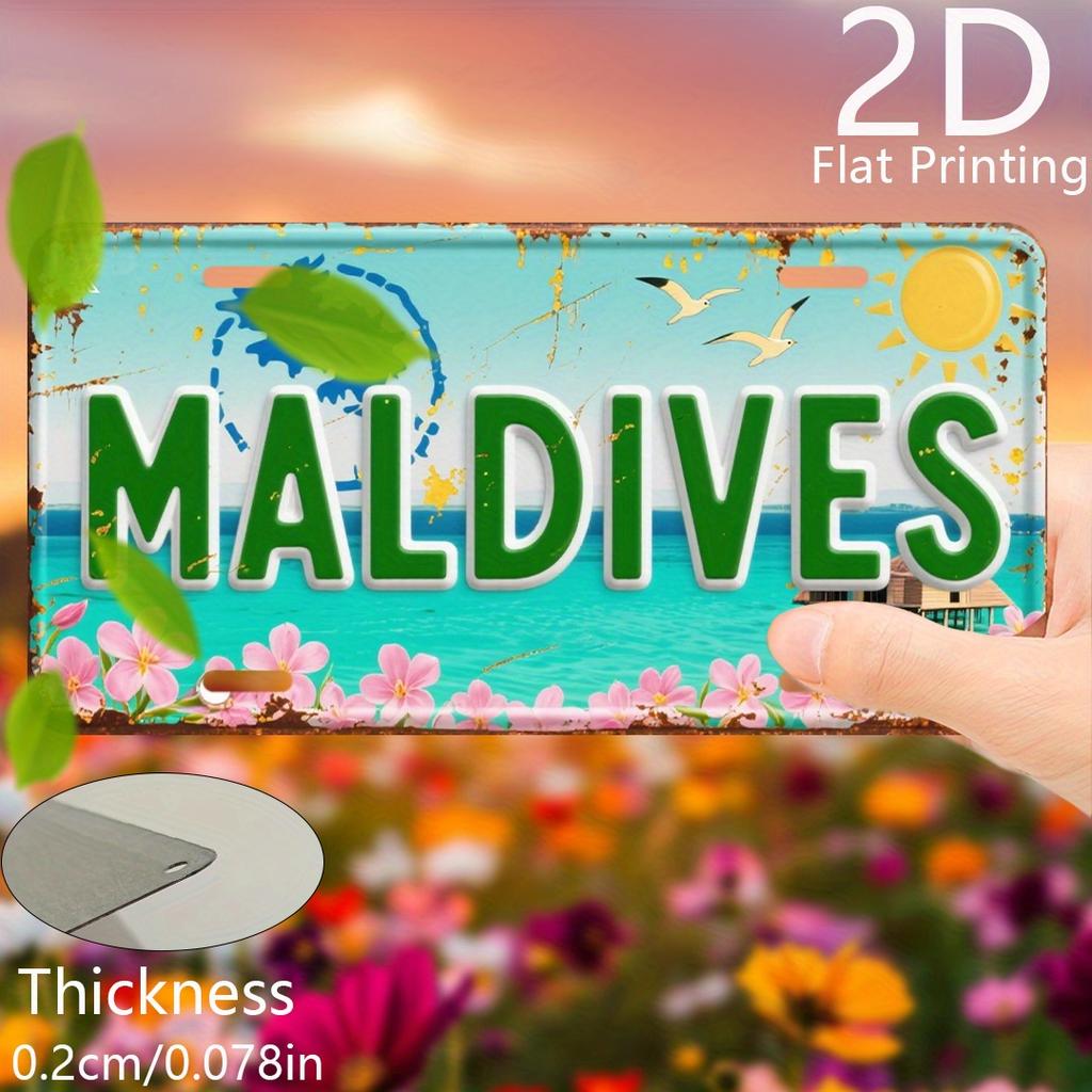 Tropical Maldives License Plate - Retro Travel Poster Design with Turquoise Lettering - Lightweight Aluminum Plaque () - Beach H
