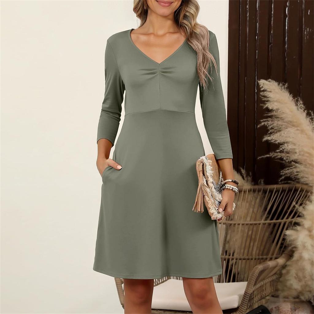 Features: 1.It is made of high quality s, enought for your daily wearing 2.Data ranking 3.Occasion:Outdoor,Beach,Summer,Party,Dating,Daily recreation,Home. 4.This lightweight, Dress is perfect for those days! 5.: Hand wash or machine wash clothes are recommended. . The Pattern the Product May Vary Please . Product information: Gender:Womens : Polyester,Spandex Decoration: None Length:above the knee Collar: V-Neck Sleeve Length: 1/2 Sleeve :Casual,fashion,Brief Occasion:Casual,Daily,Beach Pattern Type:solid color Both hand wash and machine wash is OK Package include:1PC Dress Please note that slight color difference should be acceptable due to the light and screen.