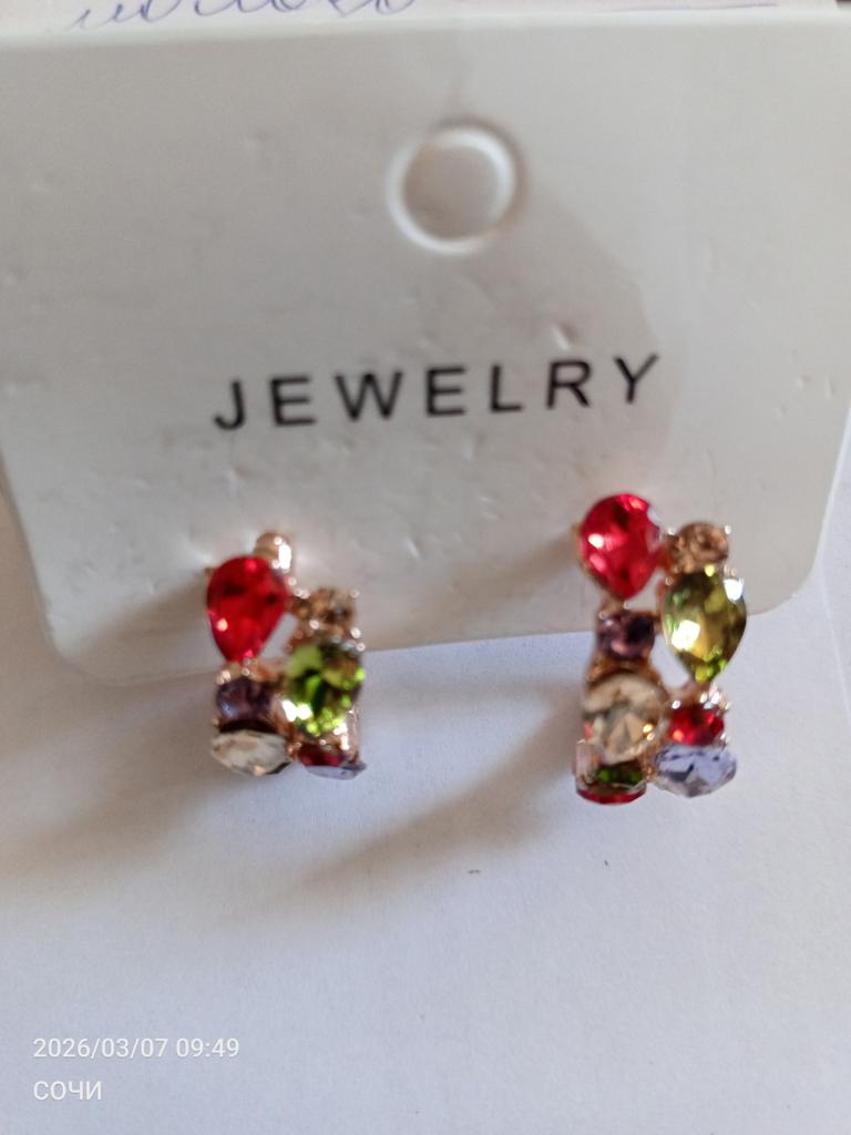 EARRINGS Earrings with splendid colored crystals!🤩 arrived in Italy with tracked shipping in 20 days in a combined package. Fast shipping. Well wrapped in a sheet of bubble wrap, they arrived intact. packaging: They are supplied in a plastic bag without the cardboard backing. Excellent value for money. The metal color is gold in zinc alloy. Back closure: sturdy metal with silicone caps. No glue stains and no defects. the crystals are well set and luminous The purchase is recommended👌👌👌👌👌