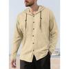 New Spring and Summer Men's Hooded T-shirt Solid Color Cotton and Linen Casual Long-sleeved Tops