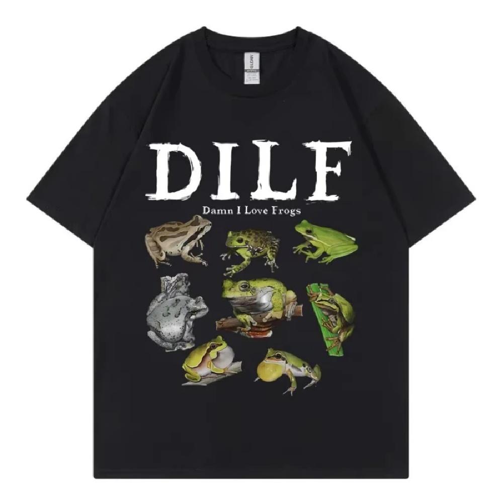Dilf Damn I Love Frogs Graphic T Shirts Men's Women's Fashion Short Sleeve T-shirt Vintage Summer Street Clothing T-shirts Tops