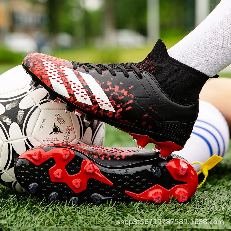 Unisex High-Top Football Shoes for Kids, Mandarin Duck Color, Long Nails, TF Artificial Grass, Student Training.