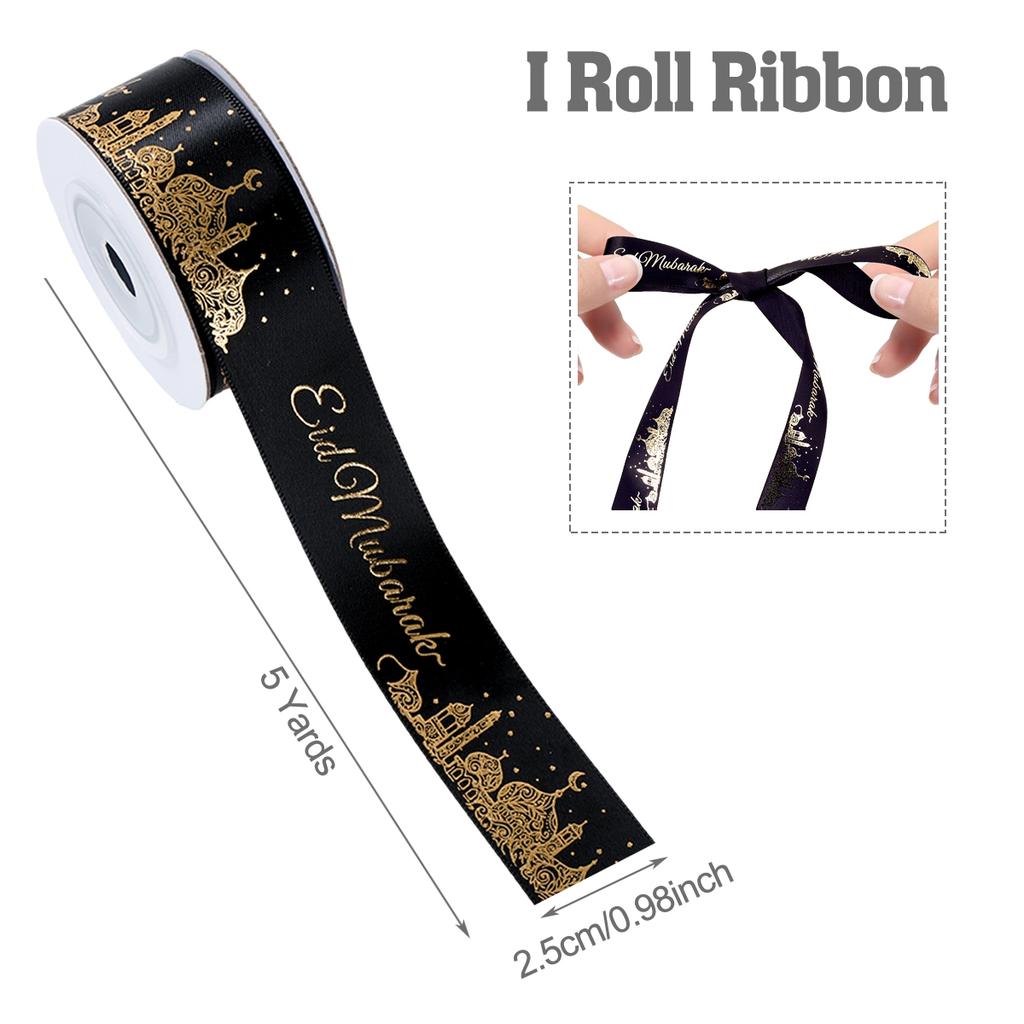 Eid Mubarak Bronzing High-Density Polyester Ribbon Gift Wrap Ribbons Ramadan Decor For Home 2025 Muslim Islamic Party Supplies