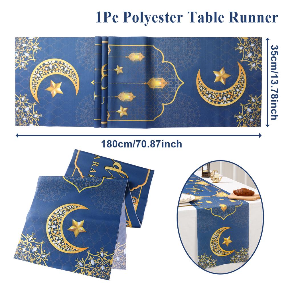 Eid Mubarak Polyester Table Runner Ramadan Kareem Table Flag Eid Decor For Home 2025 Ramadan Muslim Islamic Party Decor Supplies