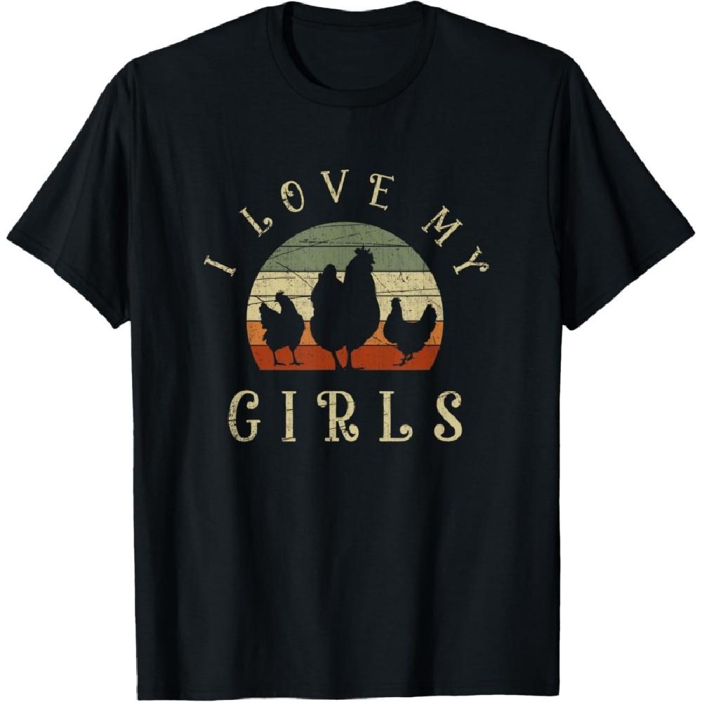 I Love My Girls Funny Farm Bird Animal Farmer Retro Chicken T-Shirt