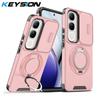 KEYSION 360° Ring Stand Phone Case for VIVO V40 SE 80W V40 Lite Slide Camera Protection Magnetic Shockproof Cover for VIVO Y200 5G