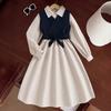 Girls' Suit Cross-border Children's Wear 2025 Autumn New Vintage Belt Vest Elegant Long-sleeved Dress Two-piece Set
