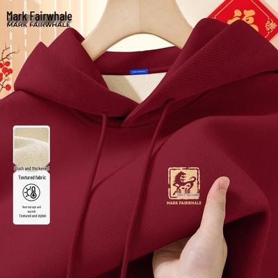 JEANSWEST Men's Red Fleece-Lined Year of the Horse Sweatshirt