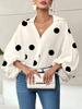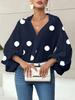 Women's Polka Dot Button Down Shirt, Long Sleeve Puff Sleeve Blouse