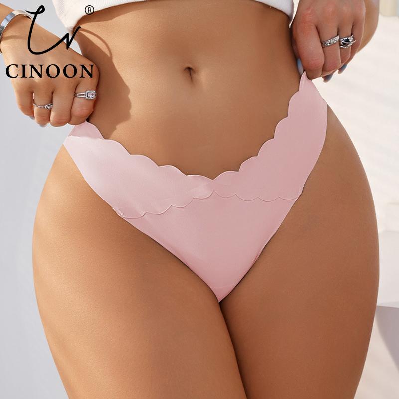 CINOON Women's Sexy Low Waist Thong Collection Ice Silk Seamless One Piece Wave Waist Snug Fit Styles Briefs