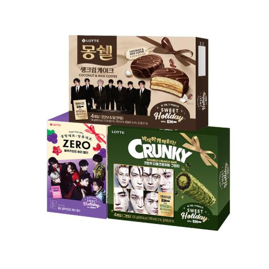 🎨 Lotte Wellfood ENHYPEN Collaboration Snack Set (Double Crunch Bar, Zero Blackcurrant Berry Jelly, Mon Cher Coconut & Milk Coffee)