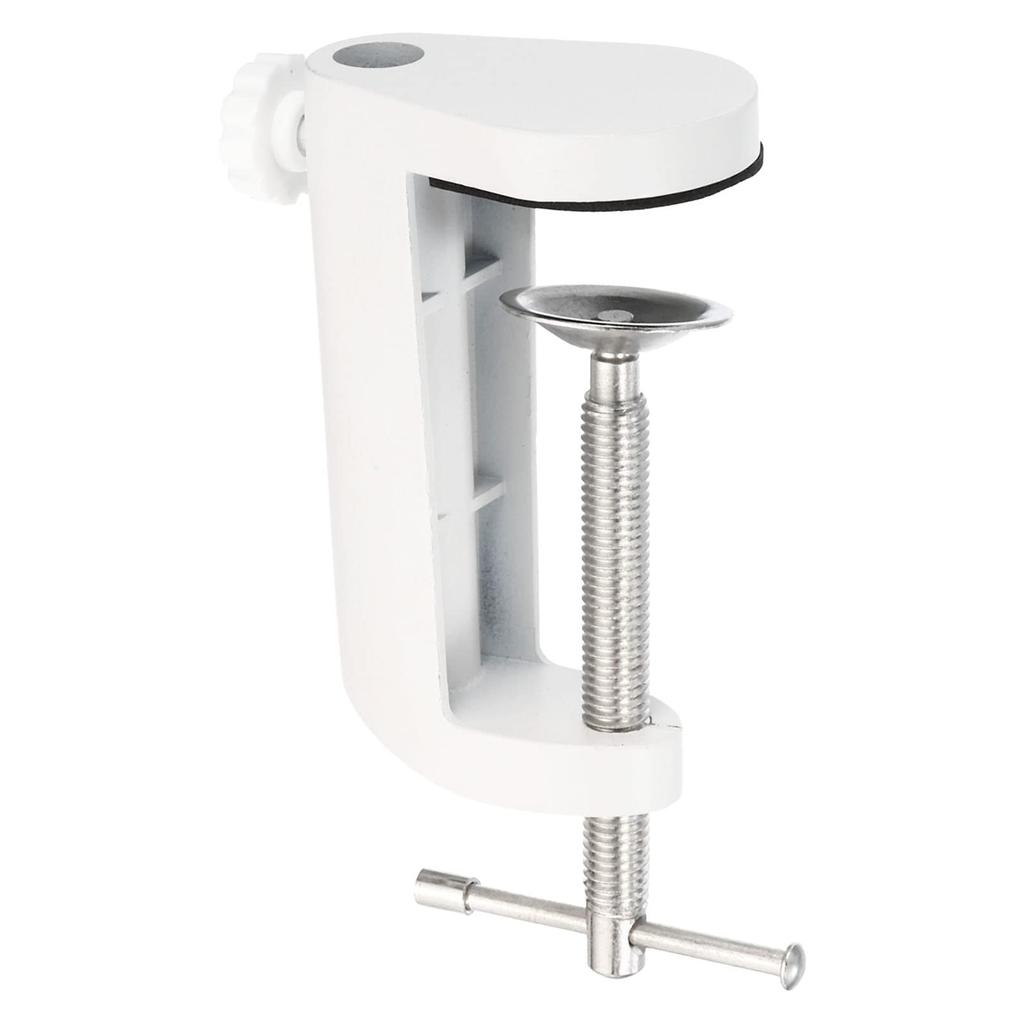 This desktop C-clamp fits any clamp or desk-based lamp and easily attaches to the bottom of each lamp arm or microphone arm, providing a secure fit on any table. It's versatile for home, office, stage, studio, broadcast, and more. It allows for added flexibility in lamp placement or allows you to add a second mount for use in other rooms.