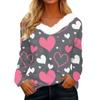 Women's Valentine's Day Printed Long-Sleeved Shirt, V-Neck, Casual Loose-Fitting T-Shirt Top