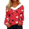 Women's Valentine's Day Printed Long-Sleeved Shirt, V-Neck, Casual Loose-Fitting T-Shirt Top