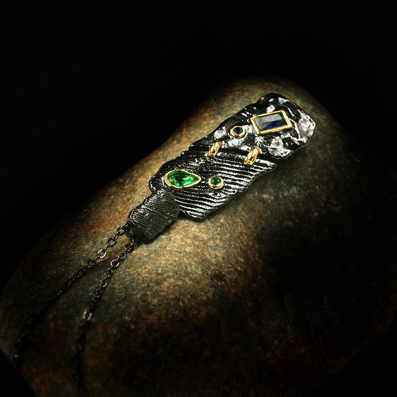 Trendy 925 Emerald Choker Pendant Necklace for Women Retro Black Gold Exaggerated Personality Gift