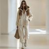 Women Hooded Pocket Loose Straight-leg Plush Jumpsuit