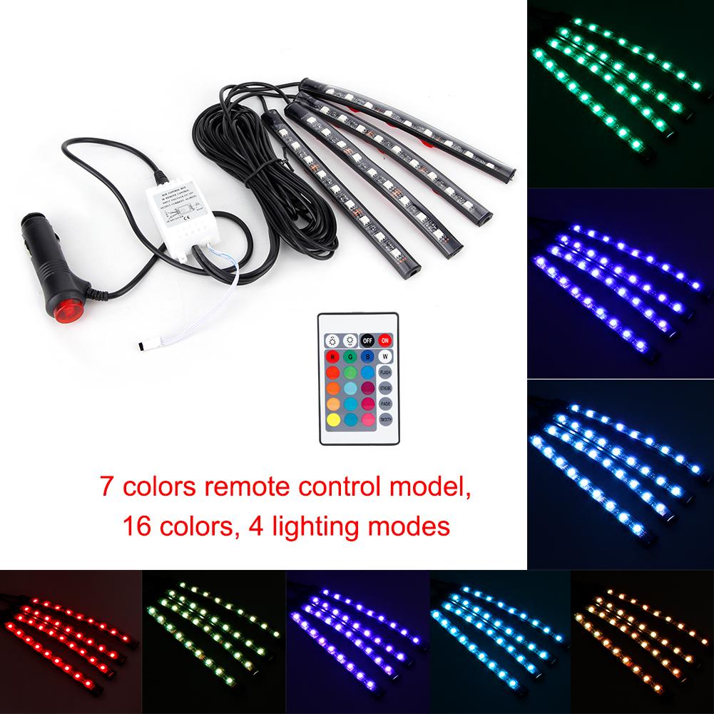 RGB LED Atmosphere Lamp Light Strips Remote Control Colorful Car Interior Decoration