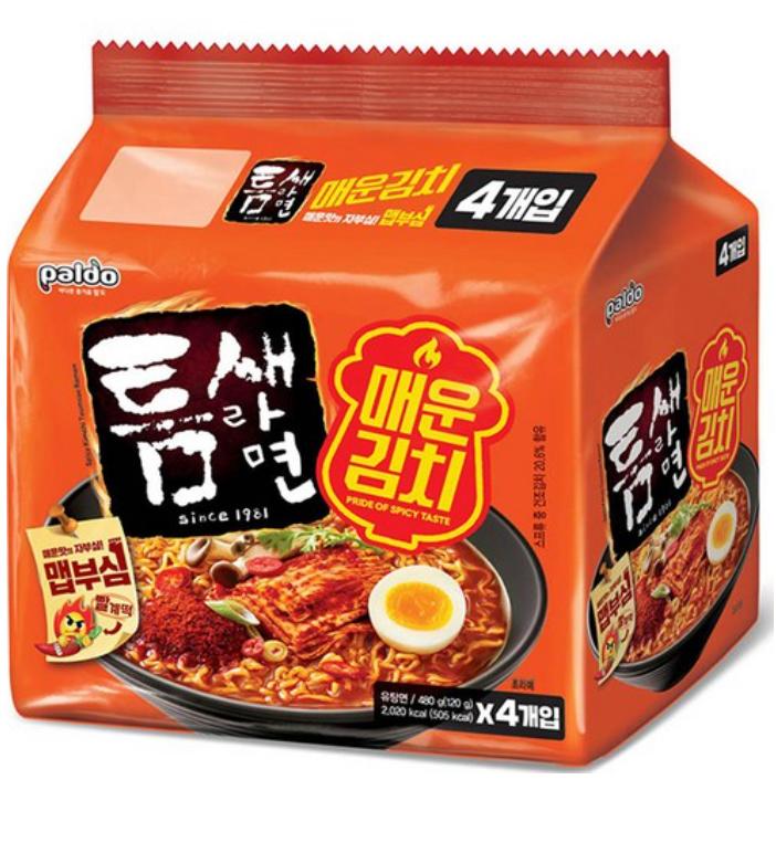 Teumsae Spicy Kimchi Ramen 120g X 4 Packs | Korean Hot Kimchi Noodles