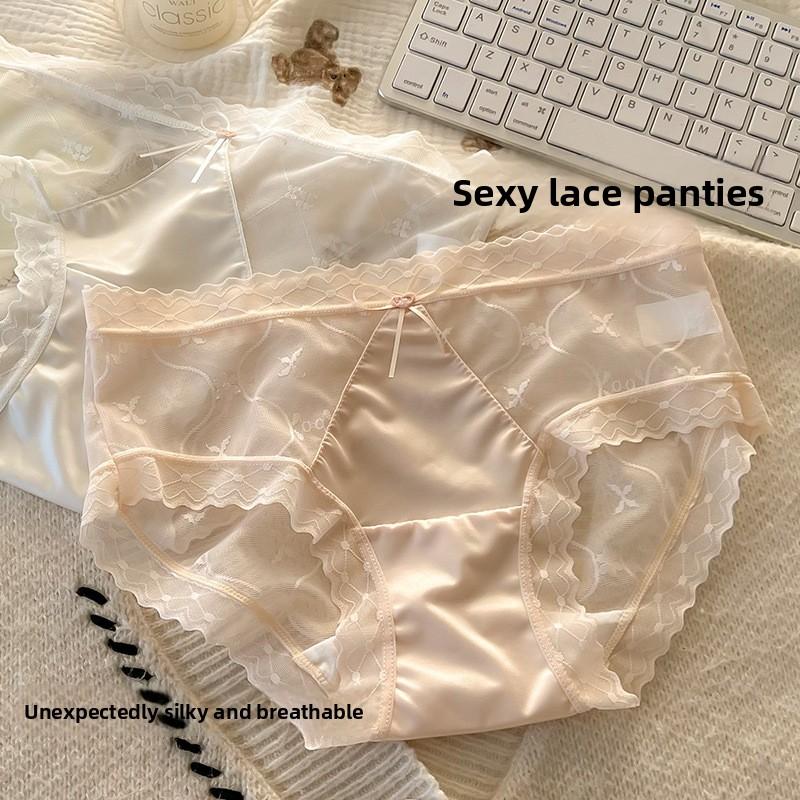 Women's Summer Light Lace Mesh No Trace Breathable Wisp Naked Feeling Ice Silk Briefs