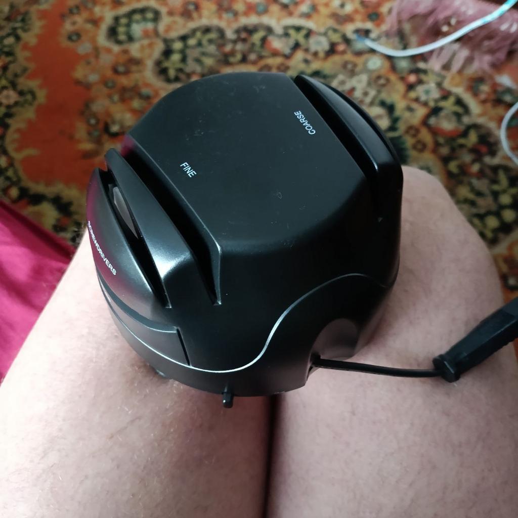 Won for 5 UAH.. Well, so-so.. Roars like a Shahed, small knives only fit halfway in... the large knife sharpens so-so.. Even stops under the weight of the large knife.. For the full price, it's not worth it, you can sharpen better with an ordinary sharpening stone for 50 UAH.. The sharpener itself is made well.. Even the plastic isn't cheap