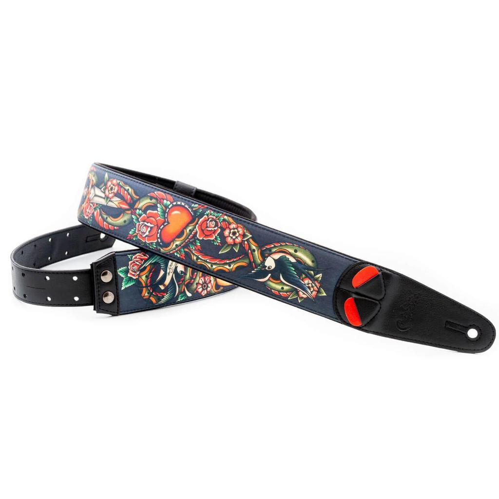 Straps 6cm TATTOO BLACK RightOn! Guitar/Bass Strap, Wide, 100-150cm,