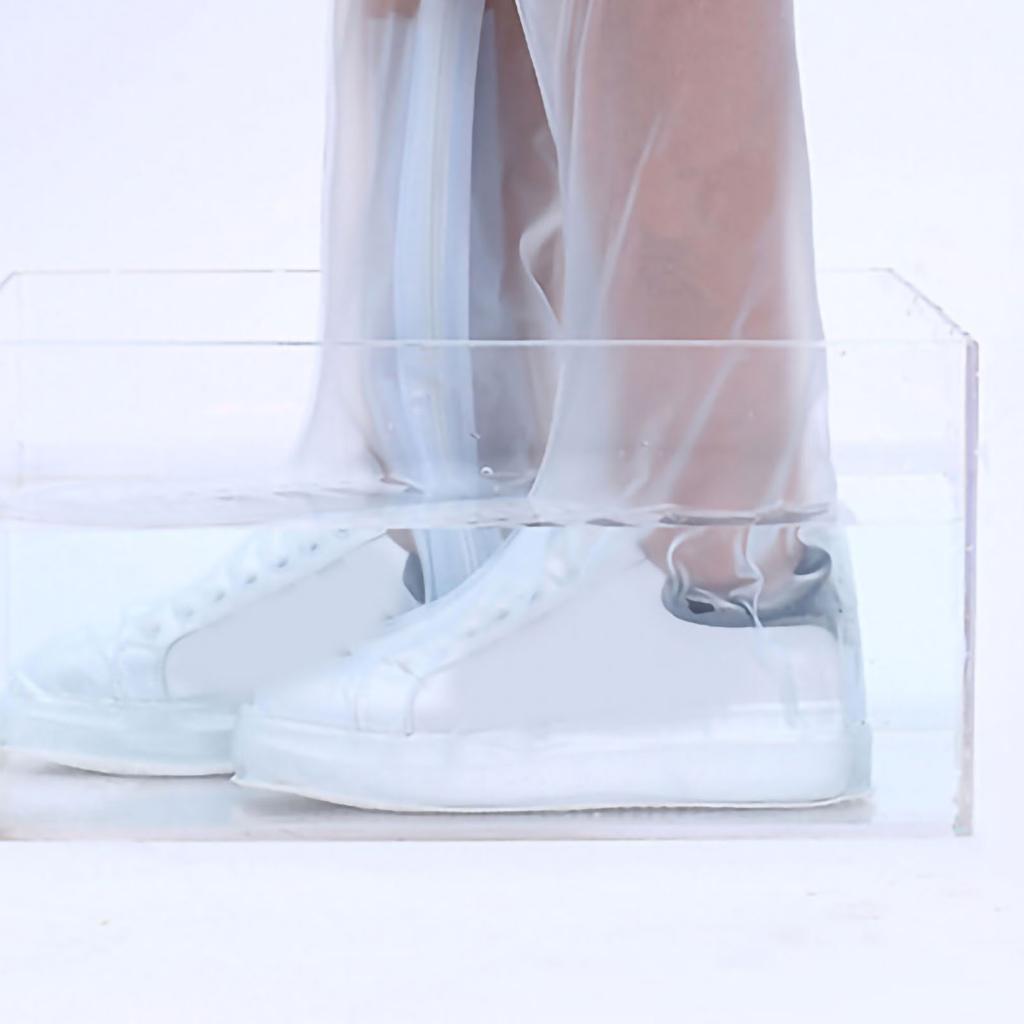 Rain Shoe Covers Waterproof Rainproof Tall Shoe Cover Antiskid Wear Resistant Rain Shoe Protector High Top White L