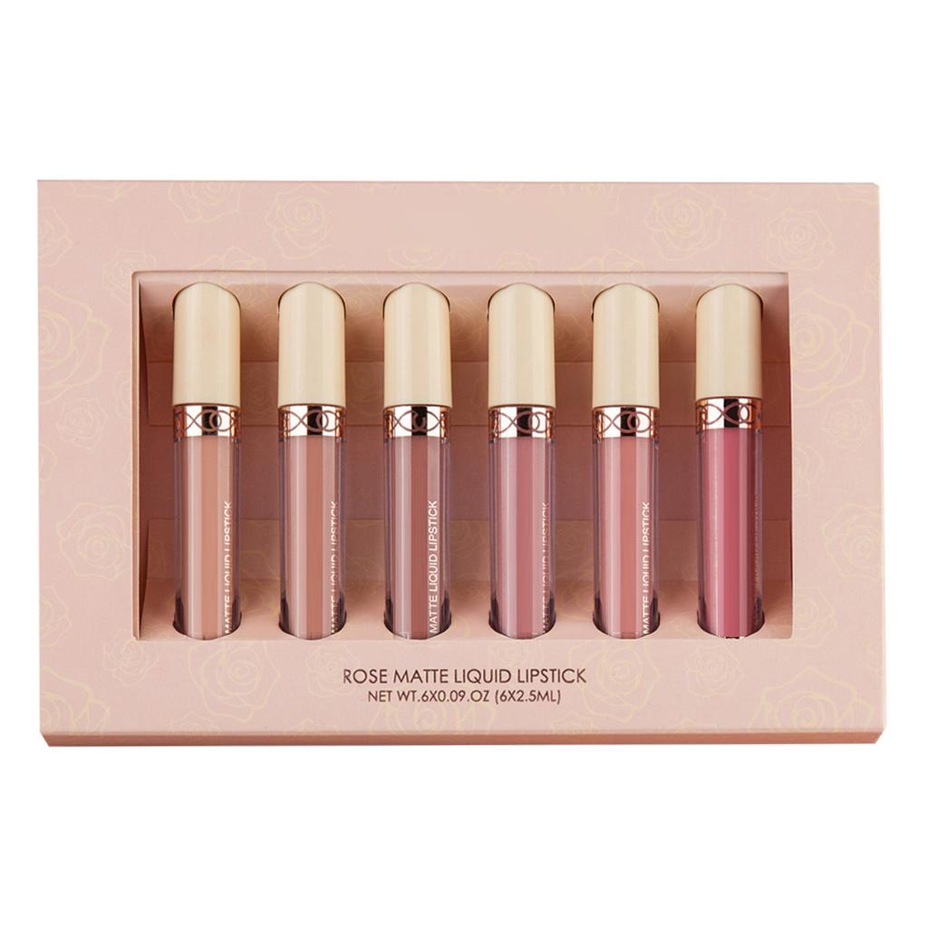 HANDAIYAN 6Pcs Rose Matte Liquid Lipstick Set Waterproof Non Stick Long Lasting Lip Gloss Lip Makeup
