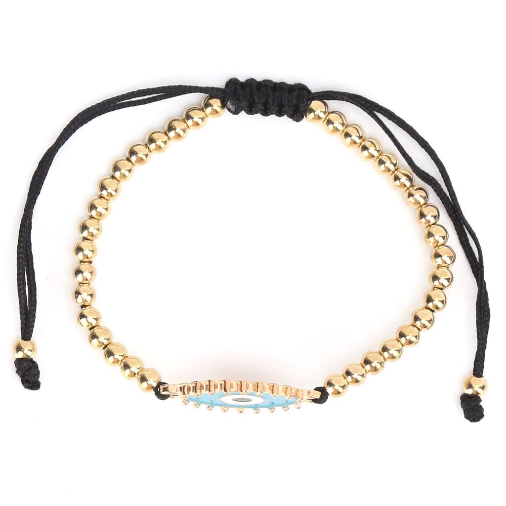 Beaded Bracelet Bohemian Turkish Eye String Bracelet with Golden Beads for Men Women Children CouplesBlue