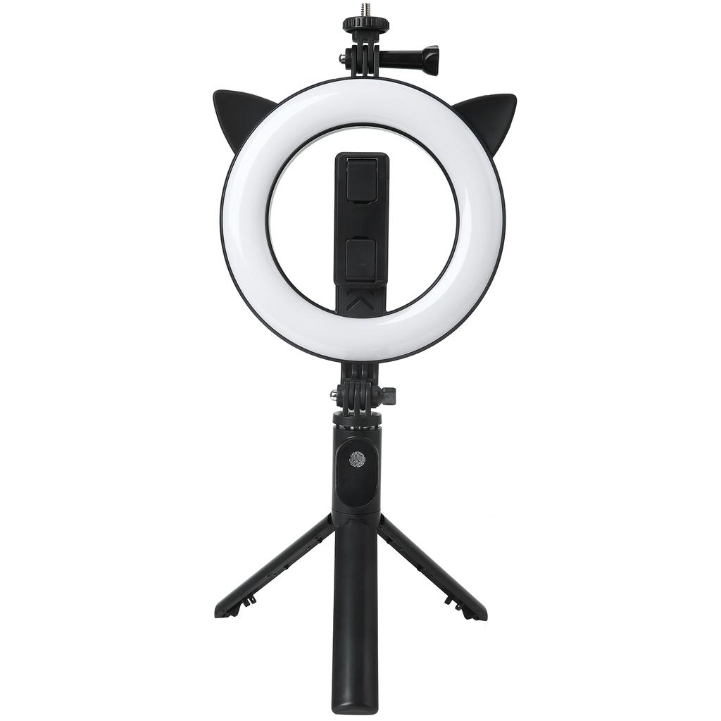 2. 3‑in‑1 tripod with ring light, Selfie pole with adjustable knob, tripod + 360 degrees rotatable mobile phone holder for more stability.