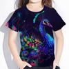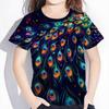 Girls' Clothing 3D Printed Beautiful Peacock T-shirt Summer Children's Clothing Short Sleeved T-shirt Casual Color Top